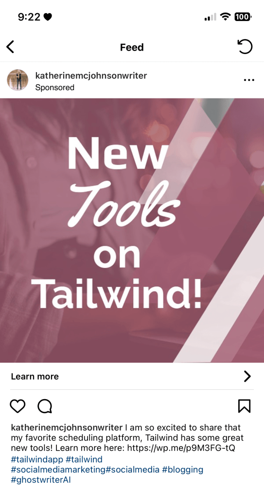 Don’t rely too much on a boosted Instagram post to drive your traffic. It is very tempting, and of course can have successful, yet varying, results. Consider maximizing your social media content with excellent writing that packs in your most useful information in the first 80-130 characters (you can get away with 100-200 characters but check with how long your profile name is); and tools such as awesome website and blog content, and catching titles on the your graphics, Tailwind, visual content and adding hashtags to your posts. Read up on the value of the hashtag in my article: The Hashtag- Why is it Important?